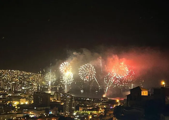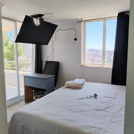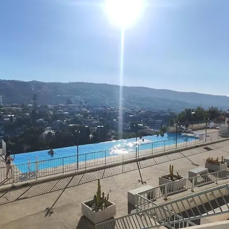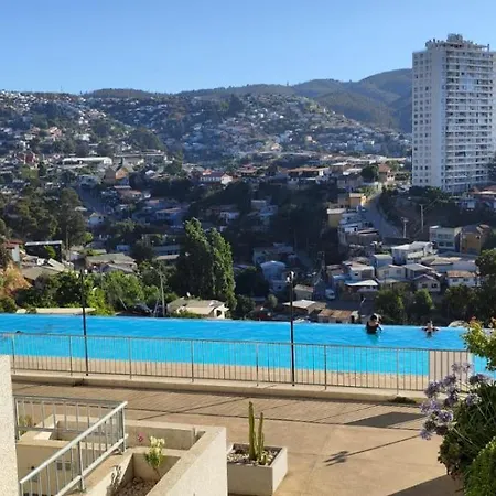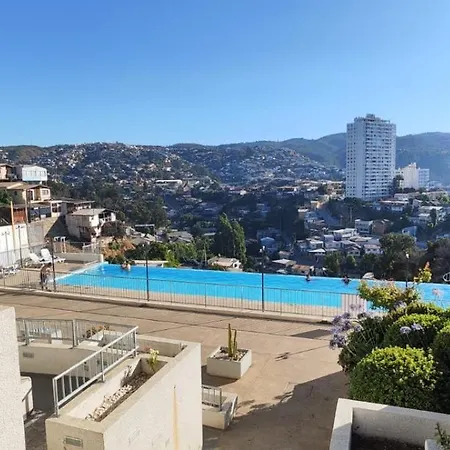 Ocean View & Pool Family Apartment 2P 瓦尔帕莱索距离维多利亚广场有10分钟的车程.全场有无限网络. 客房配有写字台,高速互联网 和休息区.住所一共有1间浴室,配备浴缸,独立卫生间 和淋浴.